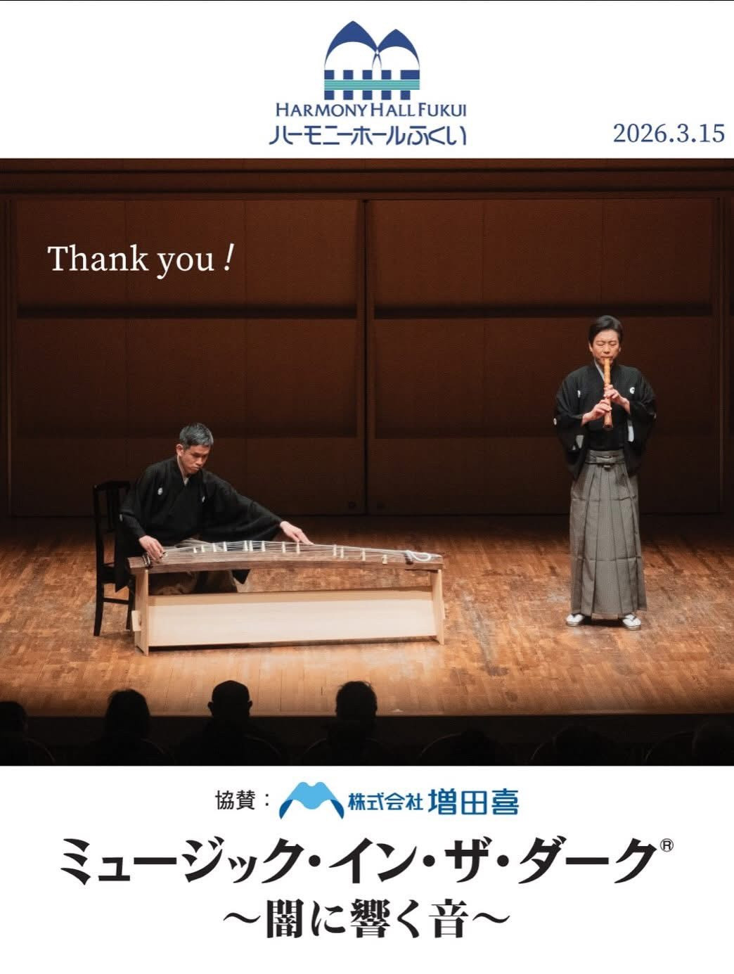 藤原道山さん、新井鴎子さん、そして多くのスタッフの皆様、本当に、本当に、ありがとうございました!!!